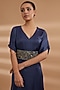 Featuring a blue dress in bemberg satin base. It is paired with an embroidered belt. Style it with hoop earrings and heels for evening wear or cocktail party.