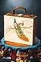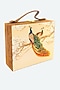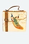Featuring a beige and green box clutch in satin base with print, having a click closure.