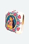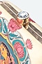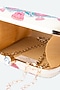 Featuring a beige and pink box clutch in satin base with print and a twist closure. It has a shoulder strap.