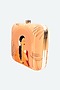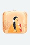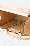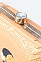 Featuring a beige box clutch in satin base with print and a twist closure. It has a shoulder strap.