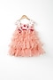 Featuring a peach layered dress in tulle base with applique hand embroidery.