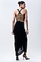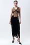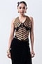 Featuring a black and gold striped corset top in banarasi silk, crepe, chiffon and lycra base. It is paired with a black frilled skirt. Accentuate it with statement earrings and elegant heels for a stylish ensemble, ideal for cocktail evenings.