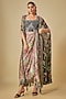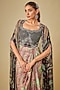 Featuring a black slit cape in chiffon base with digital print. It is paired with a crepe and lycra hand embroidered bustier and a satin skirt. Accentuate it with statement earrings and heels for a festive occasion or wedding ceremony.