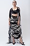 Featuring a black cape in crepe, chiffon and lycra base with print. It is paired with a printed skirt and a strappy sequins blouse. Accentuate it with statement earrings and elegant heels for a stylish ensemble, ideal for cocktail evenings.