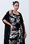 Featuring a black gathered dress in chiffon, crepe and lycra base with print. It is paired with a gathered jacket. Accentuate it with statement earrings and elegant heels for a stylish ensemble, ideal for cocktail evenings.