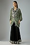Featuring a mint short kite top in crepe base with print and hand embroidery. It is paired with black embroidered gharara pants. Accentuate it with statement earrings and heels for festive ceremonies.