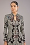 Featuring a black peplum jacket in crepe base with hand embroidery. It is paired with hand embroidered gharara pants. Accentuate the it with stud earrings, embellished heels and a clutch for festive occasions.