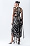 Featuring a gold sequins crop top in chiffon, crepe and lycra base with black fringes detail. It is paired with a black printed crush skirt. Accentuate it with statement earrings and elegant heels for a stylish ensemble, ideal for cocktail evenings.