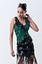 Featuring a green top in crepe and lycra base with embroidery. It is paired with a black sequins mini skirt having fringe detail. Accentuate it with statement earrings and elegant heels for a stylish ensemble, ideal for cocktail evenings.