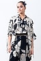 Featuring an off-white and black shirt in crepe base with print. It is paired with black printed A-line pants. Accentuate it with statement earrings and elegant heels for a stylish ensemble, ideal for cocktail evenings.