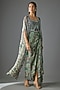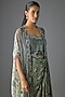 Featuring a black dress in crepe, satin and lycra base with print and embroidery. It is paired with an off-white georgette digital printed slit cape. Accentuate it zircon earrings and stilettos for evening parties or date nights.