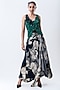 Featuring a green top in satin, crepe and lycra base with embroidery. It is paired with a black printed A-line skirt. Accentuate it with statement earrings and elegant heels for a stylish ensemble, ideal for cocktail evenings.