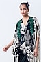 Featuring a black cowl dress in satin base with print. It is paired with an off-white crepe printed pick-up jacket. Accentuate it with statement earrings and elegant heels for a stylish ensemble, ideal for cocktail evenings.