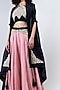 Featuring a black blouse in habutai silk, crepe, and organza base. It is paired with contrasting old rose french knotted gharara and dupatta top.