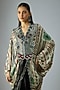 Featuring an off-white gathered kite top in satin base with print and hand embroidery. It is paired with a black satin pick up-skirt. Accentuate it with statement earrings and heels for festive ceremonies.
