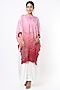 Featuring a blush pink and red shaded half-crushed kurta in silk base with bandhani print. It is paired with contrasting off-white lungi skirt.