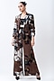 Featuring a brown blazer in crepe and satin base with print. It is paired with printed A-line pants and a black sequins strappy blouse. Accentuate it with statement earrings and elegant heels for a stylish ensemble, ideal for cocktail evenings.