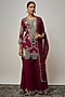 Featuring a burgundy kurta in silk and crepe base with hand embroidery. It is paired with crepe gharara pants and a georgette dupatta. Accentuate with statement jewellery and heels for a wedding or sangeet ceremony.