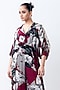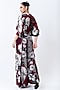 Featuring a burgundy kimono jumpsuit in crepe base with print. Accentuate it with statement earrings and elegant heels for a stylish ensemble, ideal for cocktail evenings.