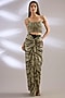 Featuring a burgundy jacket in organza base with print. It is paired with a crepe studded bustier and a satin knotted skirt. Style with statement earrings and soft waves to elevate the glam factor, Ideal for sangeet, evening celebrations, or destination festivities.