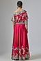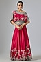 Featuring a burgundy lehenga in silk and crepe base with sequins, thread, kantha and beads hand embroidery. It is paired with an embroidered off-shoulder top. Accentuate it with silver or swarovski jewellery and heels for a wedding or sangeet ceremony.