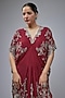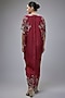 Featuring a burgundy kaftan maxi dress in silk base with mirror and cutwork hand embroidery. Accentuate it with statement earrings and heels for a festive occasion.
