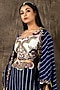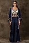 Dark Navy Blue Printed & Embroidered Gathered Kaftan Jacket Set