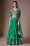 Emerald Green Satin Hand Embroidered Jacket Lehenga Set