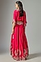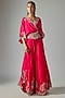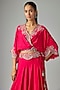 Featuring a fuchsia top in bemberg crepe base. It is paired with sharara pants. Accentuate it with statement jhumkas, a vibrant potli bag and embellished juttis for a stylish ensemble, ideal for festive gatherings, sangeet nights, or celebratory occasions.