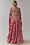 Fuchsia Georgette & Silk Mirror Cutwork Embroidered Jacket Lehenga Set