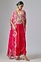 Fuchsia Organza Hand Embroidered Cape Set