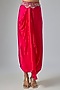 Featuring a fuchsia cape in organza base with mirror, swarovski, metallic, sequins and pearl hand embroidery. It is paired with a crepe and lycra strappy blouse, including satin dhoti pants. Accentuate it with silver or swarovski jewellery and heels for a wedding or sangeet ceremony.
