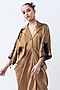 Featuring a gold kaftan dress in banarasi silk base. Accentuate it with statement earrings and elegant heels for a stylish ensemble, ideal for cocktail evenings.