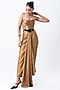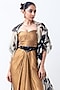 Featuring a gold dress in banarasi silk base. It is paired with an off-white organza printed jacket. Accentuate it with statement earrings and elegant heels for a stylish ensemble, ideal for cocktail evenings.