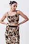 Featuring a golden sequins strappy bustier in crepe and lycra base. It is paired with an embroidered pencil skirt. Accentuate it with statement earrings and elegant heels for a stylish ensemble, ideal for cocktail evenings.