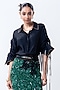 Featuring a black shirt in silk, crepe and lycra base. It is paired with a green embroidered pencil skirt. Accentuate it with statement earrings and elegant heels for a stylish ensemble, ideal for cocktail evenings.