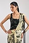 Featuring an ivory pre-draped saree in chiffon base with digital print. It is paired with a crepe and lycra blouse having sequins embroidery. Accentuate it with zircon dangler earrings, a clutch and block heels for an evening soiree, after party or cocktail ceremony.
