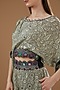 Featuring an ivory top in crepe base with mirror embroidery and peacock print. It is paired with matching circular pants.