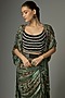 Featuring a mint gathered cape in bemberg chiffon base. It is paired with a crepe and lycra embroidered top, including a bemberg chiffon skirt. Accentuate it with statement jhumkas, a vibrant potli bag and embellished juttis for a stylish ensemble, ideal for festive gatherings, sangeet nights or celebratory occasions.