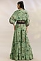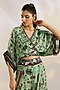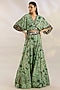 Featuring a mint kaftan top in crepe base with digital print, sequins, kantha, thread, bead work and fringes hand embroidery. It is paired with printed kali sharara pants. Accentuate it with statement earrings and strappy heels for a stylish ensemble, ideal for evening soirees, festive gatherings or mehendi functions.