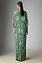 Featuring a mint kaftan dress in crepe base with print. Accentuate it with minimal jewellery and stilettos for garden parties, brunches or evening wear.