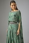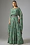 Featuring a mint green off-shoulder top in crepe base with sequins and thread hand embroidery, including kantha, fringes, bead work and digital print. It is paired with a printed lehenga. Accentuate it with statement earrings and heels for festive occasions or wedding ceremonies.