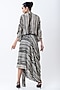 Featuring a multi-colored wrapped kaftan dress in crepe base with bamboo stripes. Accentuate it with statement earrings and elegant heels for a stylish ensemble, ideal for cocktail evenings.