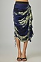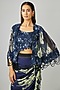 Featuring a navy blue cape in crepe, chiffon and lycra base with print. It is paired with a sequins bustier and a frilled skirt. Accentuate it with dangler earrings and heels for a cocktail evenings.
