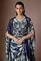 Navy Blue Crepe & Chiffon Printed Cape Set