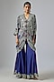 Featuring a navy blue top in crepe base with sequins, thread, kantha and beads hand embroidery. It is paired with crepe and lycra gharara pants. Accentuate it with silver or swarovski jewellery and heels for a wedding or sangeet ceremony.