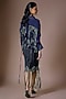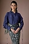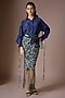 Featuring a navy blue shirt in silk, crepe and lycra base. It is paired with a silver embroidered pencil skirt. Accentuate it with statement earrings and elegant heels for a stylish ensemble, ideal for cocktail evenings.