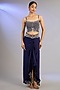 Featuring a navy blazer in crepe base with hand embroidery. It is paired with a crepe and lycra bustier, including a satin pick-up skirt. Accentuate with statement jewellery and heels for a wedding or sangeet ceremony.