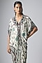 Featuring an off-white kaftan maxi dress in crepe base with floral print, kantha, fringes, beads, sequins and thread hand embroidery. Accentuate it with delicate pearl drop earrings and strappy sandals for a stylish ensemble, ideal for resort dinners, festive brunches or sunset celebrations.