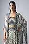 Featuring an off-white lehenga in crepe and georgette base with print, kantha, fringes, beads and sequin thread hand embroidery. It is paired with a tribal blouse and kaftan jacket. Accentuate it with statement silver or oxidised earrings and elegant heels for a stylish ensemble, ideal for festive gatherings, pre-wedding functions or bohemian-inspired celebrations.